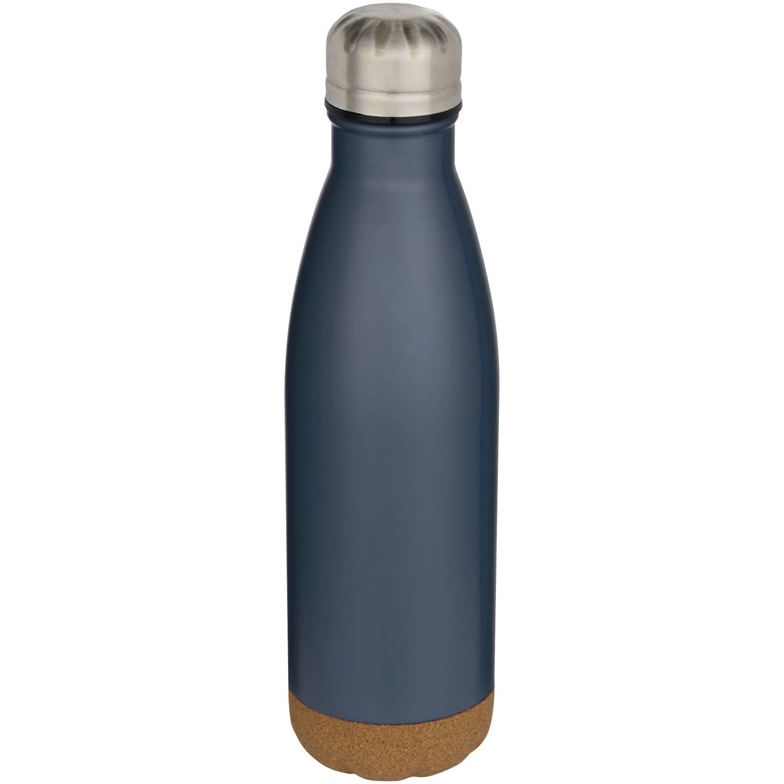 Vakuumisoleret vandflaske i rustfrit stål med korkdetaljer i bunden. Dobbeltvægsisoleringen holder drikkevarer varme i 12 timer eller kolde i 48 timer. Leveres i en æske af genbrugspap. Kapacitet: 500 ml.