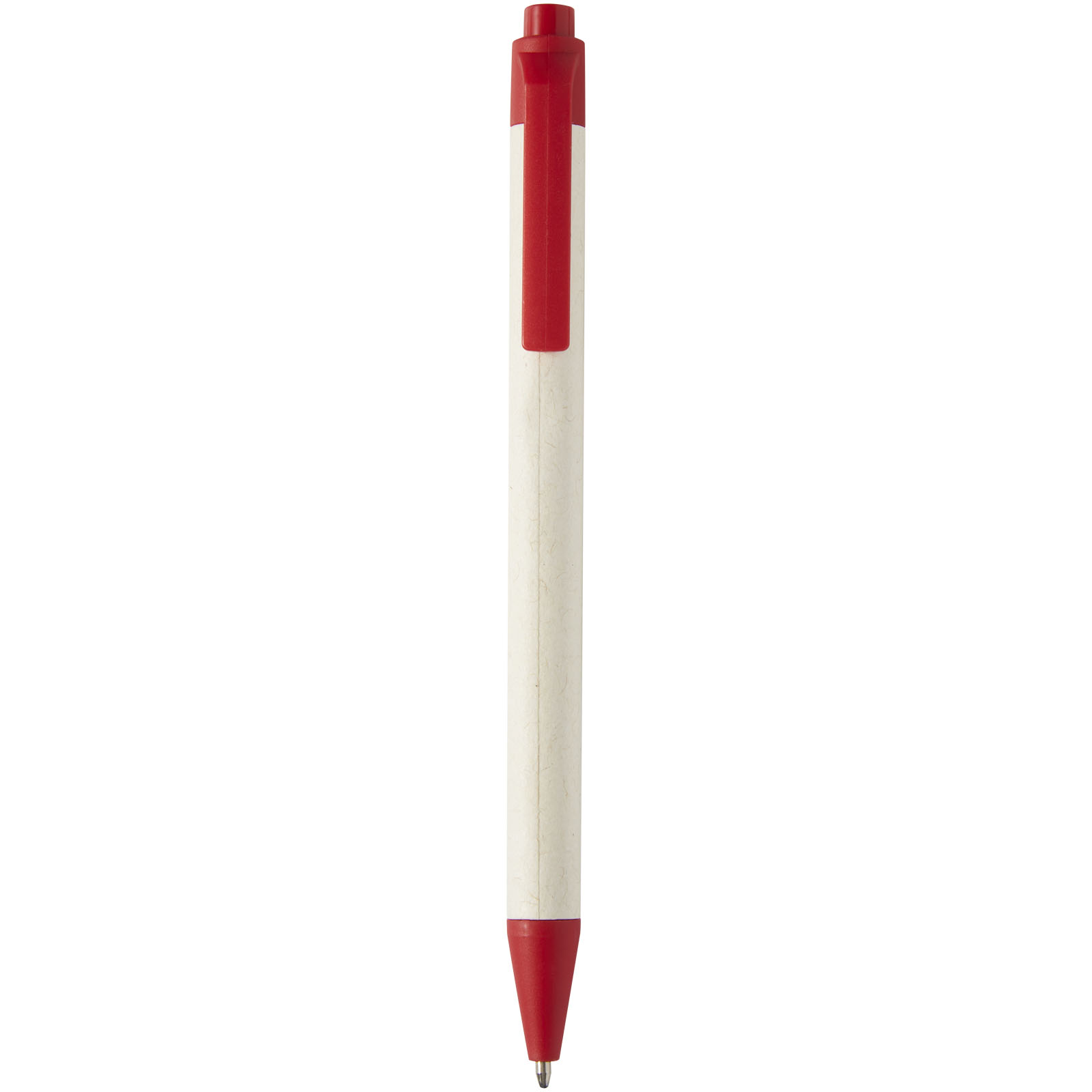 Klik kuglepennen har en cylinder fremstillet af genvundete mælkekartoner (op til 70 %). Knappen, klipset og spidsen er lavet af PLA plast. Brugte mælkekartoner indsamles, sorteres, forarbejdes og omdannes til papir, hvilket virkelig gør affald til noget nyttigt.