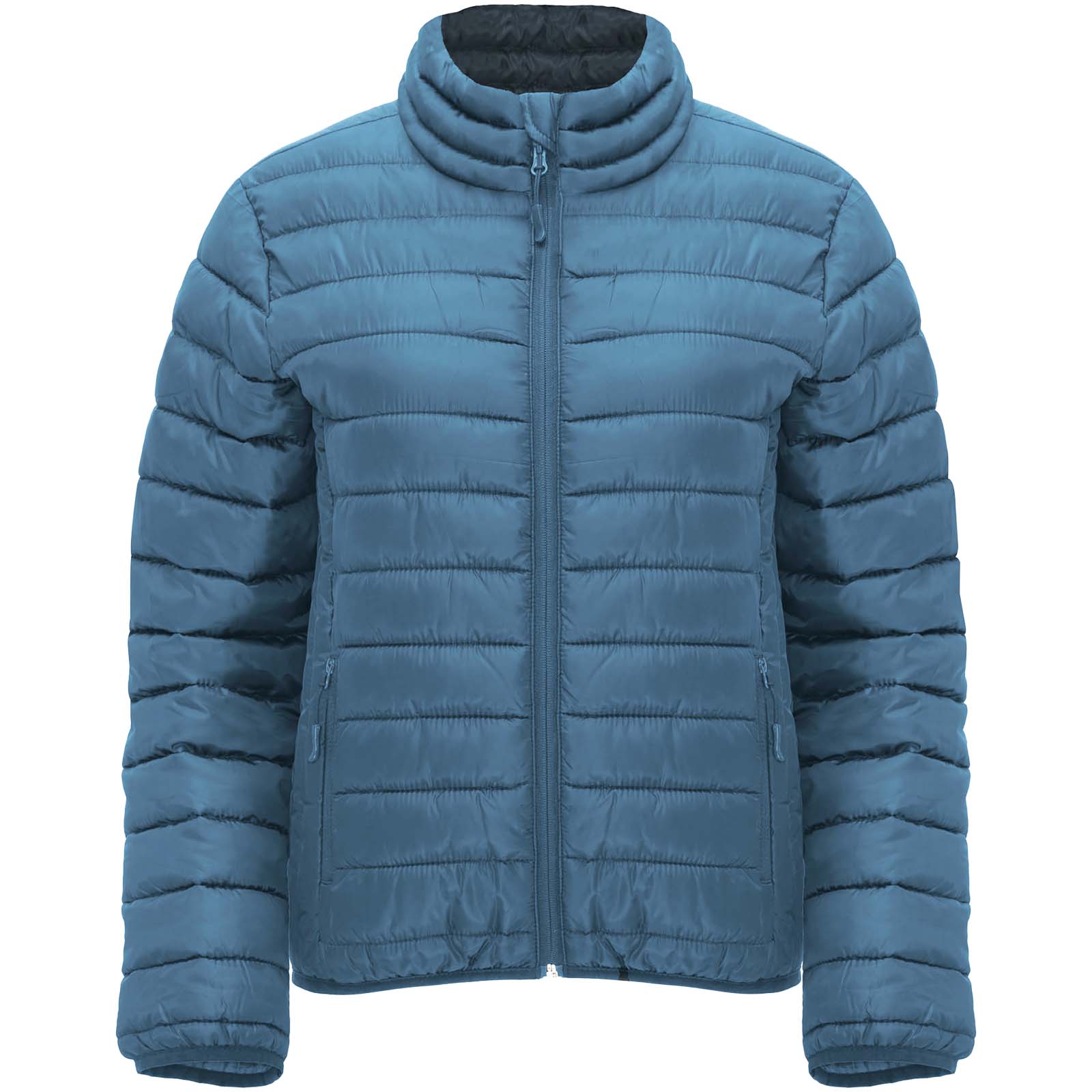 Quiltet kvindejakke med fjer-touch polstring. Omvendte lynlåse med matchende hagebeskytter og skyder. To forlommer med lynlås. Matchende elastisk kant i krave, manchetter og kant. Indvendig kontrastforing. Pose til opbevaring inkluderet. Let og foldbar beklædningsgenstand.Figursyet snit. Aftagelig etiket. Vandtæt. Vindtæt. Modellen er 179 cm og iført str. S