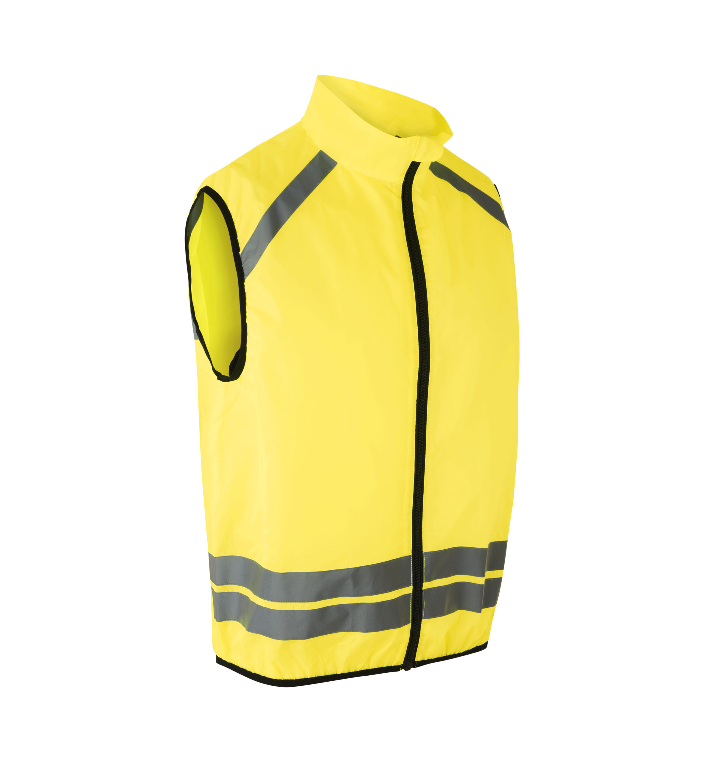 Løbevest i åndbar kvalitet med refleksstriber. Vind- og vandafvisende på front. YKK-lynlås.